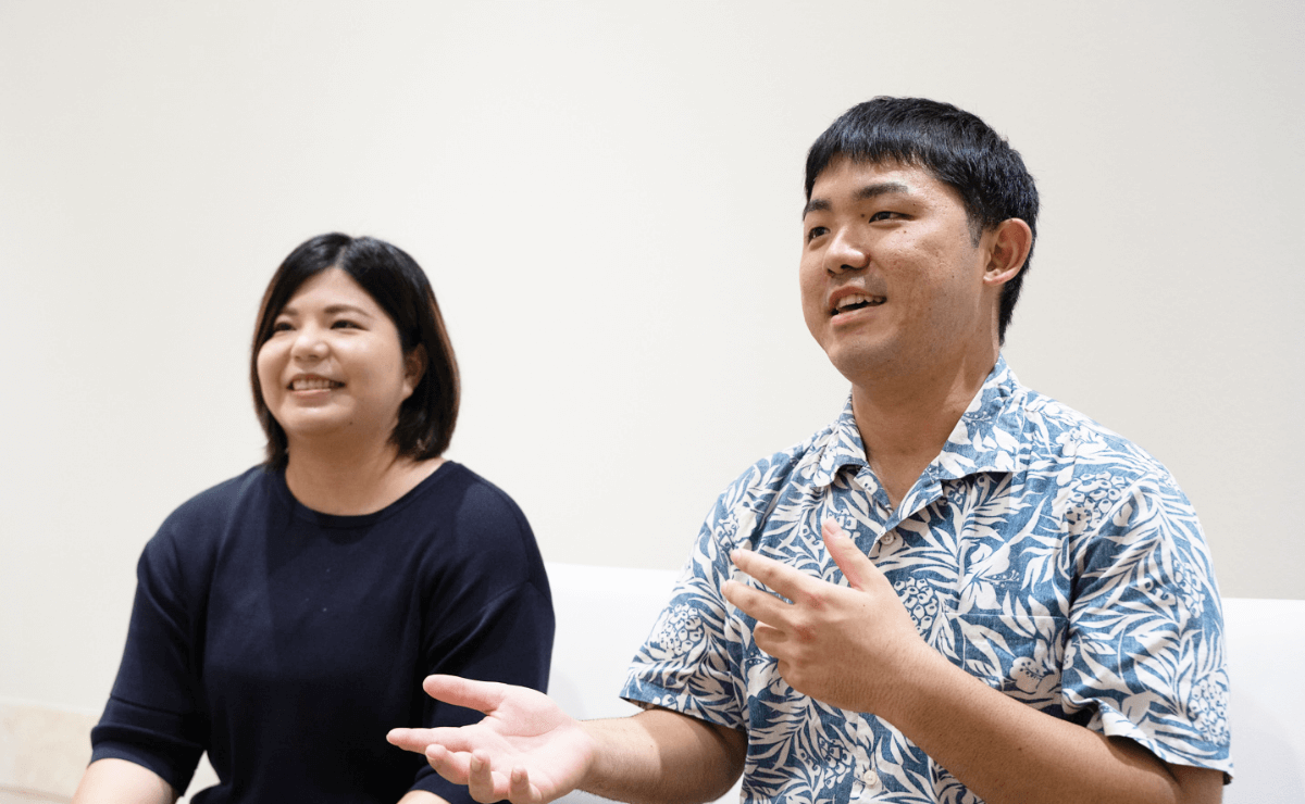 右:OTNet株式会社より出向/沖縄セルラー電話株式会社 ビジネスデザイン本部 ビジネス営業部 ビジネス営業2グループ 當山 塁